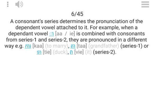 -Learn all khmer characters: consonants, sub consonants, vowels, independent vowels, diactrictics, numerals and more.