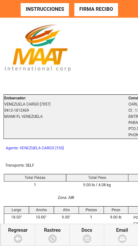 * Ricerca per numero di ricevuta ricevuta e / o tracking (inseguimento).