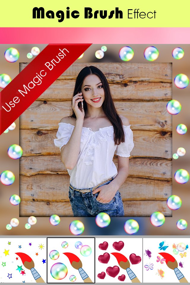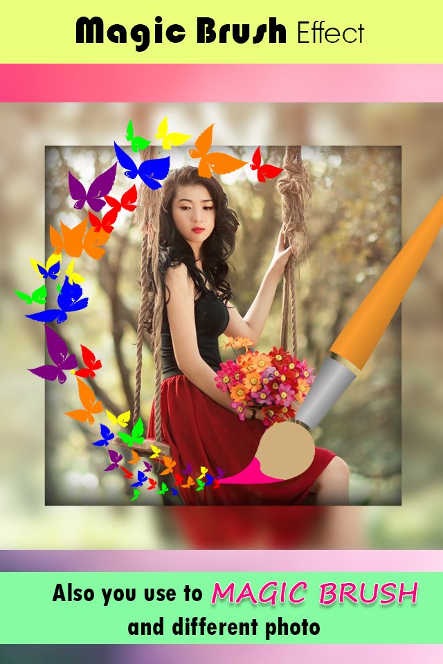 Magic Brush effects like Butterfly, circle, bubble, flower, heart and stunning design effects that make your photo more impressive.