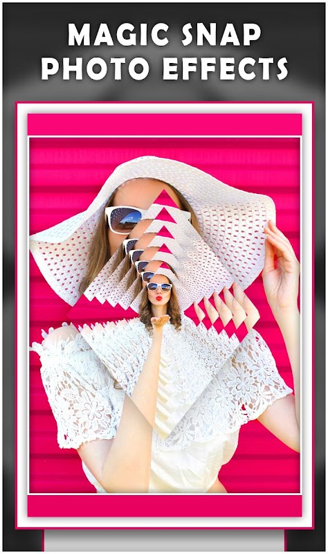 Magic Snap Photo Effect è un miglior fotomontaggio per voi con telecamera quadrata e selfie. Magic Snap Photo Effect fornirà la funzione di snap per te. È possibile aggiungere le emoji e il testo insieme e condividere la foto snap per i tuoi amici. Fai foto meravigliose con gli Effetti Snap e i Filtri e ottieni più simpatici e più seguaci usando questa applicazione!
