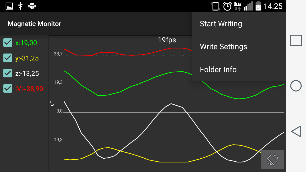 Android device contains the magnetic sensor. It is used to plot compass on the screen. This application choosed different approach. It just shows the exact values on the screen.