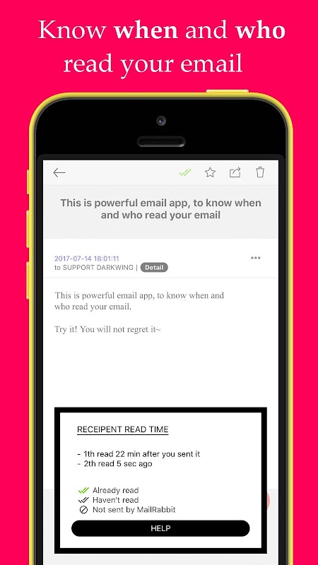 - Notification, don't worry about whether the colleague or friend has seen the letter you sent. Because, every time has person read your email, we will instant to notify you.