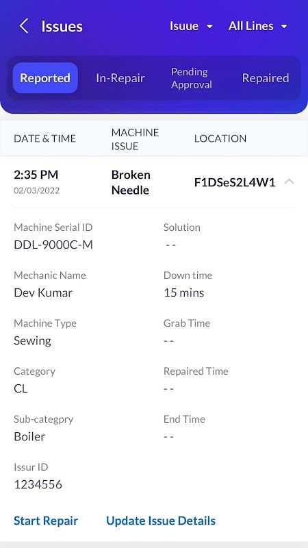 1. Esegui la gestione dell'inventario di macchina, ago, pezzi di ricambio insieme alla creazione di un processo di approvazione per aghi e pezzi di ricambio