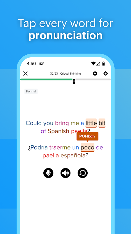 Migliora la comprensione con attività interattive di ascolto e lettura e rafforza il tuo apprendimento con revisioni giornaliere personalizzate.