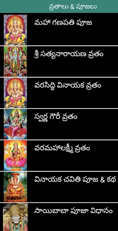 Un'app per gli stotra di tutte le principali divinità, Vedamantras Ashtottaras, in teluguscript