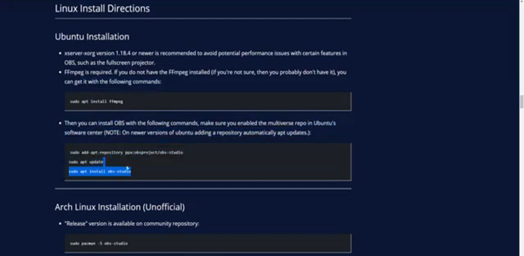 Manuale di installazione e utente di OBS Studio passo dopo passo.
