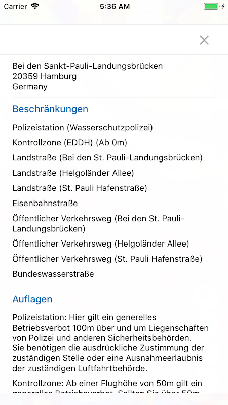 🔍 PRECISIONE: grazie all'integrazione di oltre 180 fonti di dati, Map2Fly ha la massima precisione disponibile in Germania in termini di zone di volo, regole di risalita e geodati. I continui miglioramenti da parte della comunità vengono implementati direttamente in Map2Fly.