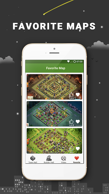 4 kinds map provided for you. Trophy base layouts to hold your trophies. Farming base layouts to save resources easily. War base layouts to block the enemy. Hybrid base to protect both loot and trophy.