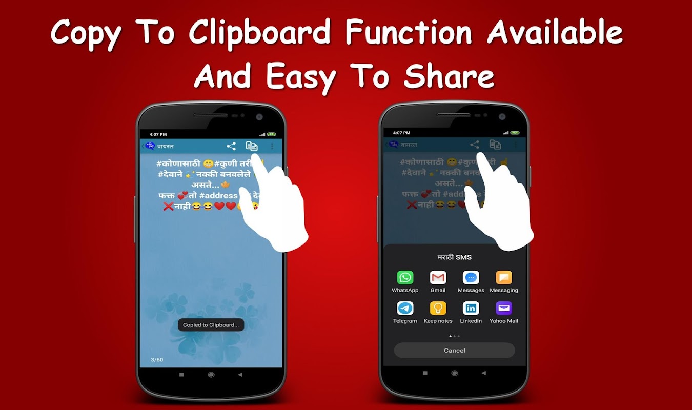 Dai un'occhiata a "SMS Marathi": un'app Android che contiene solo brevi messaggi in lingua marathi (SMS). Contiene una raccolta di bei messaggi marathi. Puoi condividere facilmente questi messaggi con i tuoi cari.