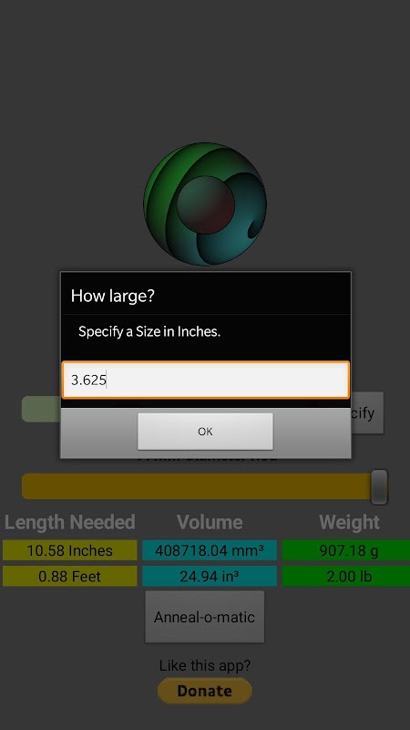 Marble Calculator helps glassblowers improve efficiency, precision, and durability of their work. The goal of this app is to unleash the creativity of artists by reducing the burden of guessing how much materials they will need, how long the finished work will need to sit in a hot kiln, and how much the final product will weigh once it is created.