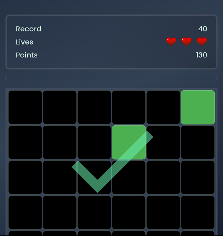 Guarda i quadrati verdi apparire sulla scacchiera. Il tuo compito? Tocca il quadrato aggiunto più di recente. A ogni round, viene aggiunto un nuovo quadrato, rendendo più difficile ricordare l'ultimo. Sembra facile? Aspetta solo che il timer inizi a scorrere!