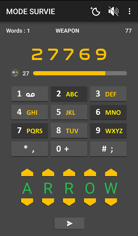 You can give the code word thanks to the small arrows up/down. Turn the letters from the beginning, and don\'t hesitate to turn them while you are looking for, that really helps!