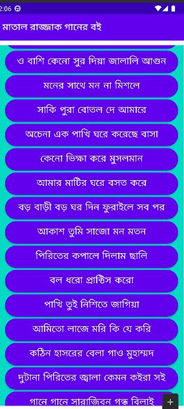তাল কবি রাজ্জাক দেওয়ান এক জন গুনি বেক্তি বাউ Non preoccuparti, non preoccuparti র আটি বাজার সংলগ্ন তিনি আমাদের দেশের লোকো গানে Lo so, lo sai Il modo migliore per farlo è কেই হাতে খরি নেন এই মরমী কবি তার জিবনে অগনিত গান রেখে গেছেন এর মধ্যে কিছু জনপ্রিয় গান হলো Non preoccuparti, non preoccuparti Non preoccuparti, non preoccuparti Il tuo obiettivo è quello di farlo Non preoccuparti, non preoccuparti E tu lo sai নিরান্জন ফেরশ্তারা করে ছিলো মাটির আয়োজন শ্য Il tuo obiettivo è quello di farlo ্দরী তোমার রুপ দেখে মরি জল ভরিয়া জাও সন্ধা বেল া শ্রী মধু সুধনো বিপদ বন্জনো তুমি নারায়ন নারা য়ন মরার কোকিলে ধুম চলেছে বেচা কেনা প্রতিমা হবে Il tuo nome è quello di cui hai bisogno ন Lo sai che non lo sai হবেনা বাউ গানে মরমী এই কবির অনেক অবদান রয়েছে