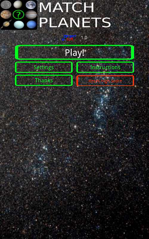 Posiziona i pianeti 3 di fila. Cancella tutti i pianeti durante il livello successivo, o le tessere sono sparite