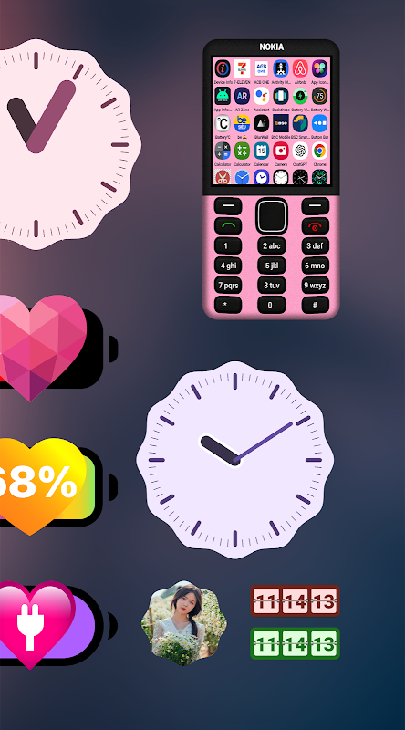 1. Stili di design multipli: widget del vecchio telefono Nokia, smartphone. Puoi interagire con i widget direttamente sulla schermata principale come premendo i tasti numerici se scegli lo stile Nokia.