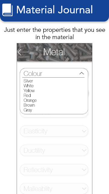Identify materials from a vast database of metals, wood, plastics, fabric, stone, paper and ceramic! Just enter few of it's properties and the material is identified instantly.