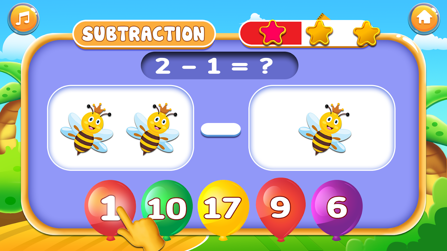 • Sono incluse sei pratiche matematiche e quelle sono Addizione, Sottrazione, impara a contare, Confronta i numeri, Disponi i numeri e Completa il modello.