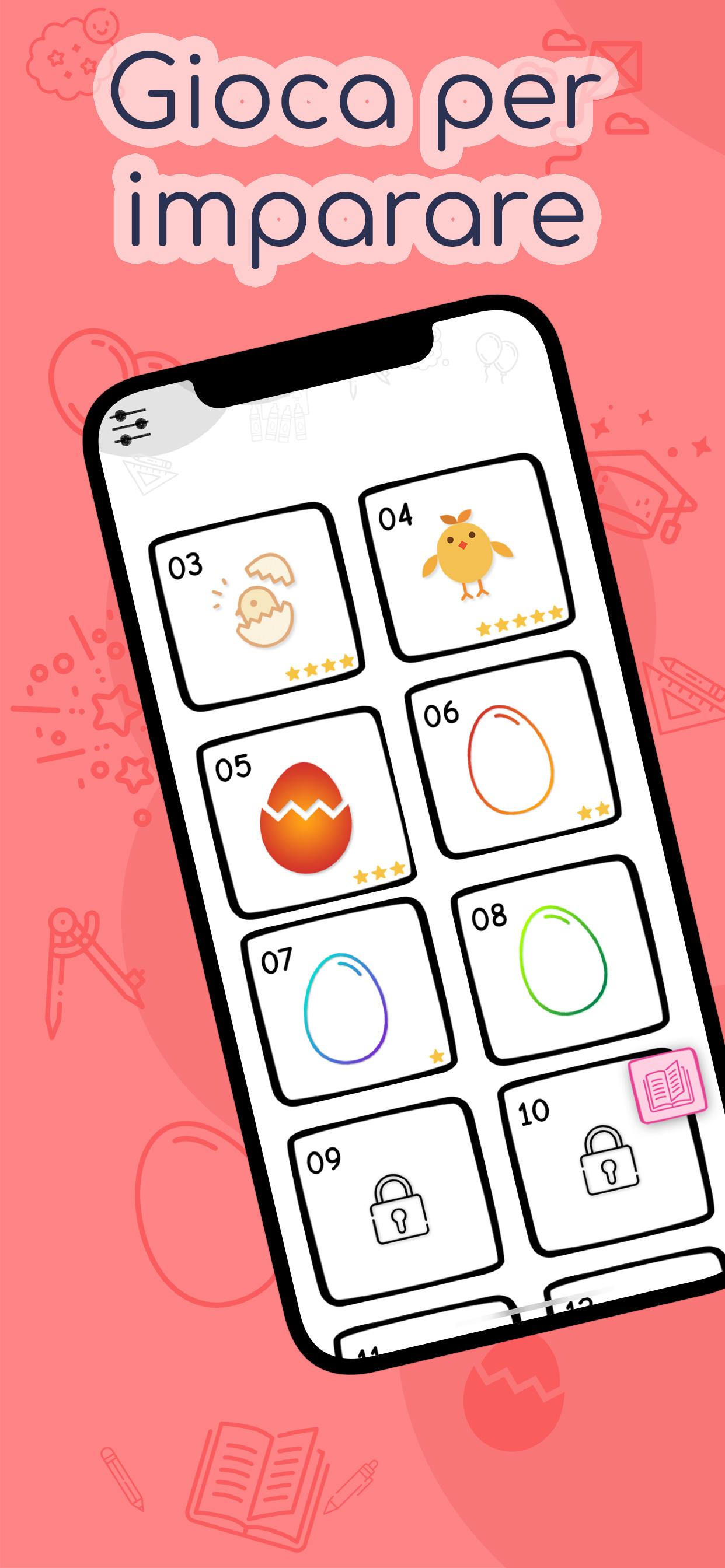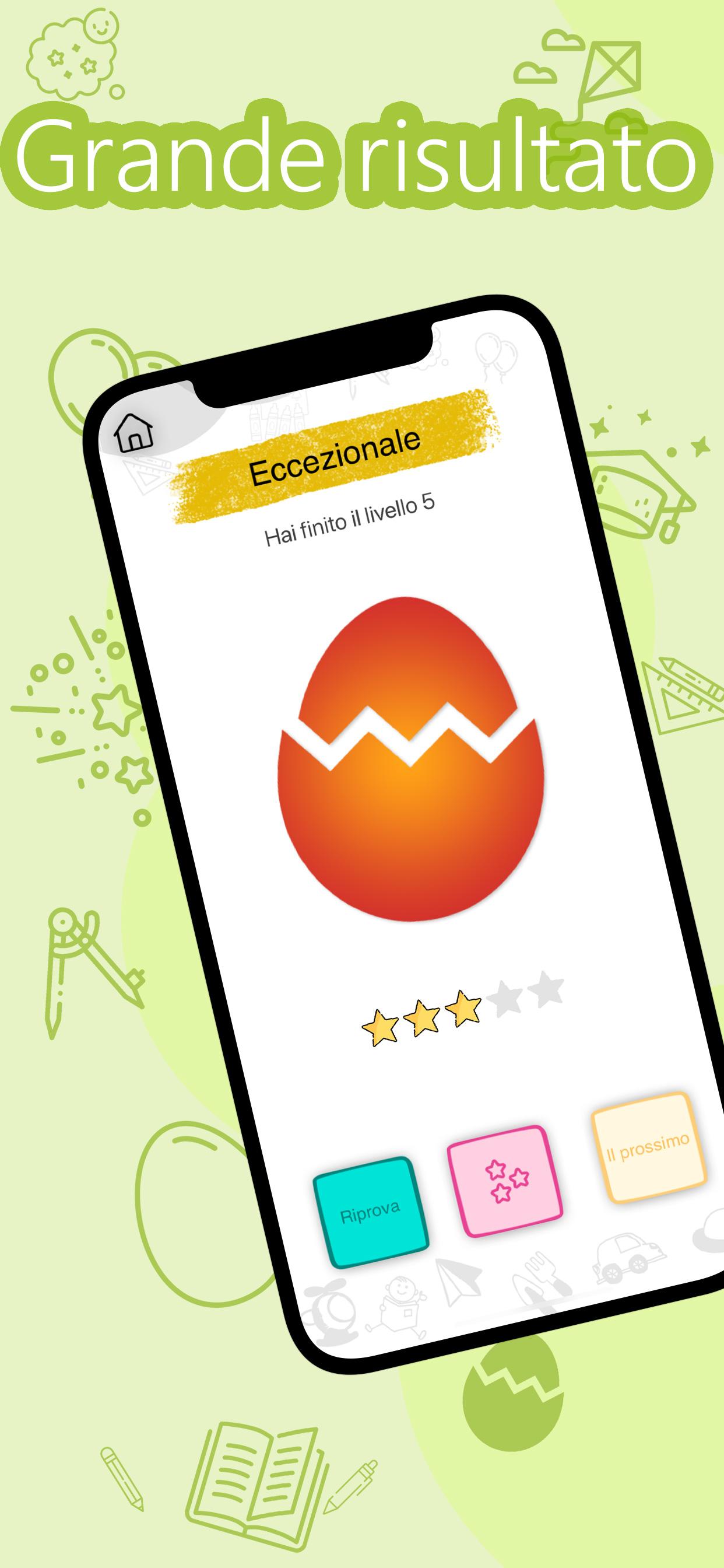 Gioco con 100 livelli da facile a difficile. Con addizione, sottrazione, moltiplicazione e divisione intrecciate. Il tuo bambino riceverà il risultato come un pollo laborioso o un pollo appena schiuso o un uovo quando completerà ogni livello con 10 domande.