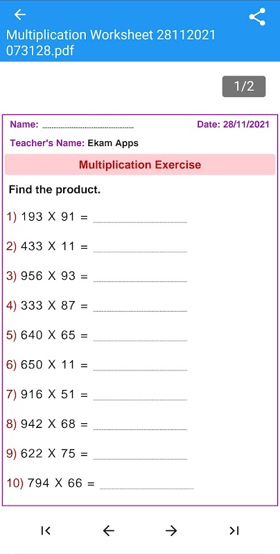 Questa app risolve le moltiplicazioni con il metodo lungo o con il metodo delle colonne. Questa app è progettata anche per generare fogli di lavoro di moltiplicazione in pdf stampabile. Questa app è in grado di generare fogli di lavoro pdf con chiavi di risposta.