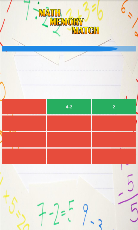Math Memory Match is a Fun brain training game to learn Addition & Subtraction. It is a nice, simple, and fun. This memory game is going to activate some areas of your brain responsible for memory acquisition which therefore can help you improve your memory.
