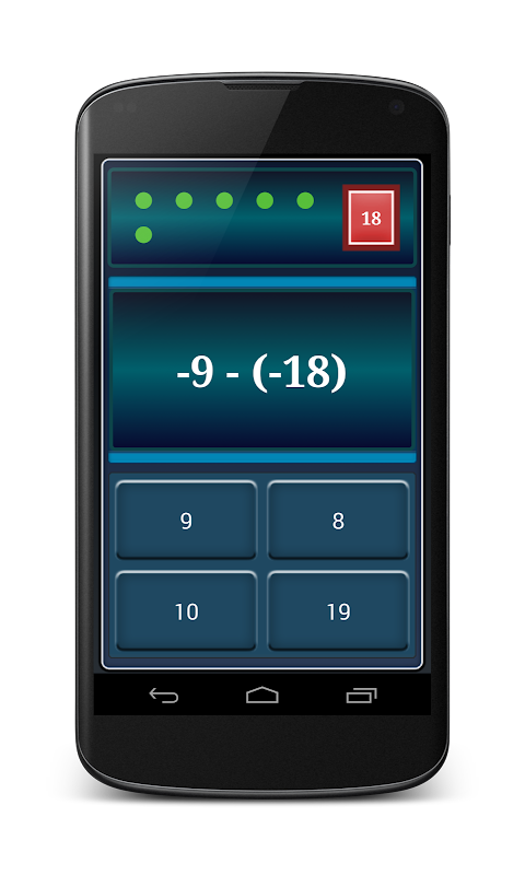 Math numeri negativi pratica è un gioco educativo per allenare e praticare vari esercizi matematici che coinvolgono numeri negativi. Il gioco è semplice - scegliere una categoria di domande, e rispondere alle domande il più velocemente possibile. Il gioco termina quando si raccolgono 10 risposte corrette (ogni risposta errata viene punito 5 secondi). È quindi possibile rivedere le risposte errate.