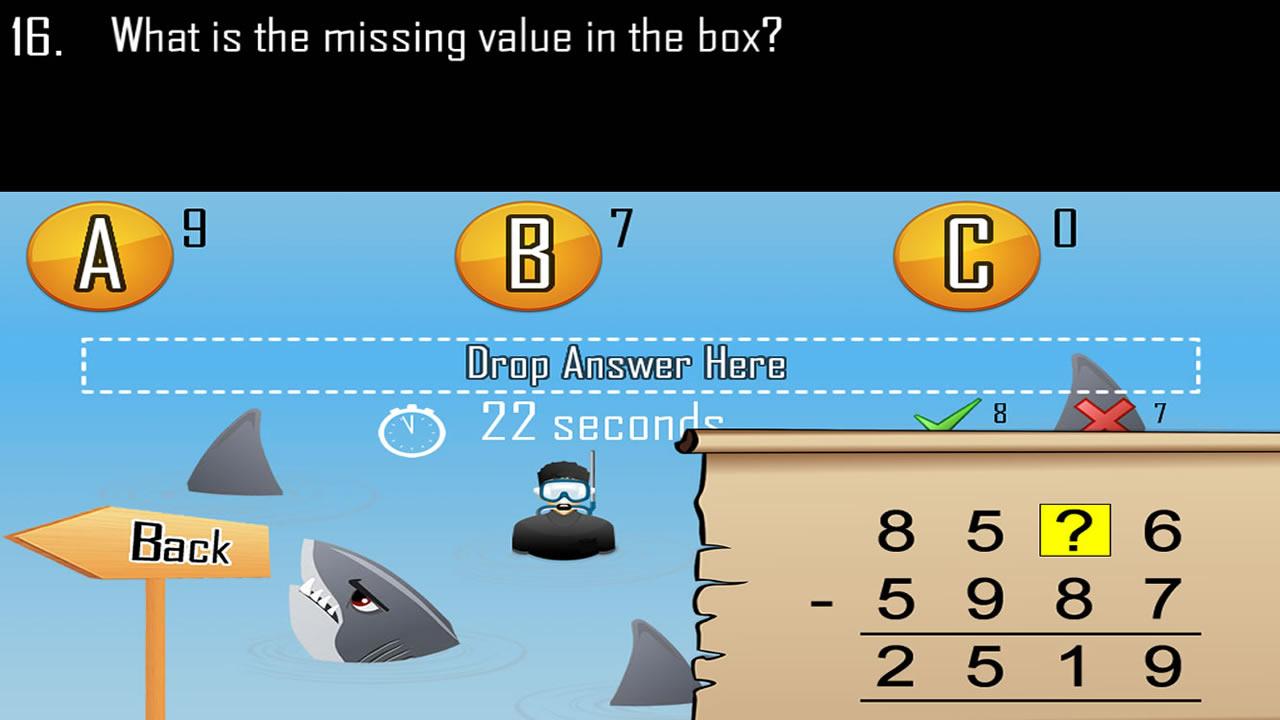 There are a total of 300 high quality Math questions that are distributed randomly over 10 different marine creatures. The main aim of the app is to encourage the learner to attempt each set of the quiz so that he can collect all of the 10 marine creatures to populate his very own 3D Oceania. The adult or teacher can adjust the level of difficulties such as the quiz duration/passing score to cater to the varying needs of the learner. The marine animals serve as a source of motivation and end goals to encourage the young learner to keep on practicing the quizzes.