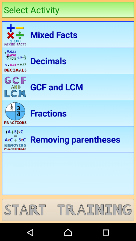 A simple App to build solid skills in addition, subtraction, multiplication, division, greatest common factor (GCF), least common multiple (LCM), fractions, removing parentheses, and basic algebra. It makes the learning process fast and fun!