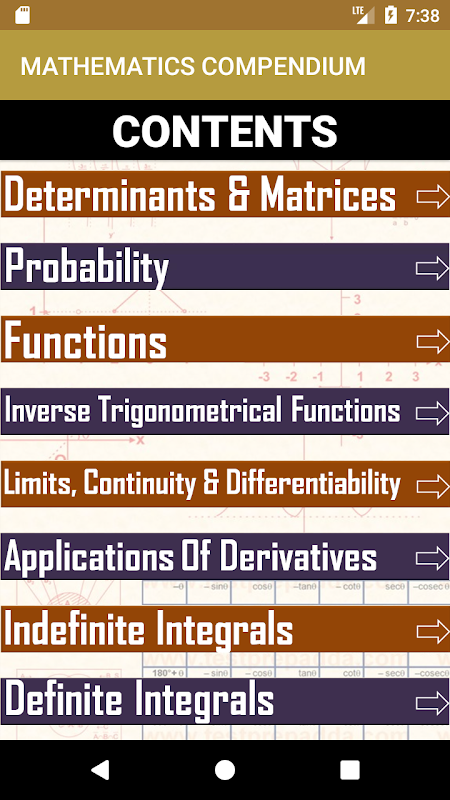 Questa applicazione è un compendio di matematica per diversi esami della matematica.