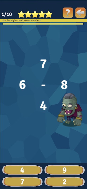 Dimostra di essere un ninja della matematica risolvendo tonnellate di problemi matematici.Maths Progress Advanced è un gioco di matematica eccitante e divertente che aumenterà l'apprendimento della matematica rapidamente e facilmente. È progettato con tonnellate di categorie di giochi di matematica interattivi. Ogni categoria selezionata ti porterà diverse sfide di giochi matematici! Ce ne sono 13 in tutto, che mettono alla prova le tue abilità matematiche. Ognuno dei 13 giochi di puzzle è diviso in dieci prove separate di difficoltà crescente, e non puoi progredire al livello di difficoltà successivo finché non hai completato la prova precedente. Le stelle su cinque sono assegnate in base al numero di domande a cui si risponde e a quanto velocemente si completano i giochi di puzzle.