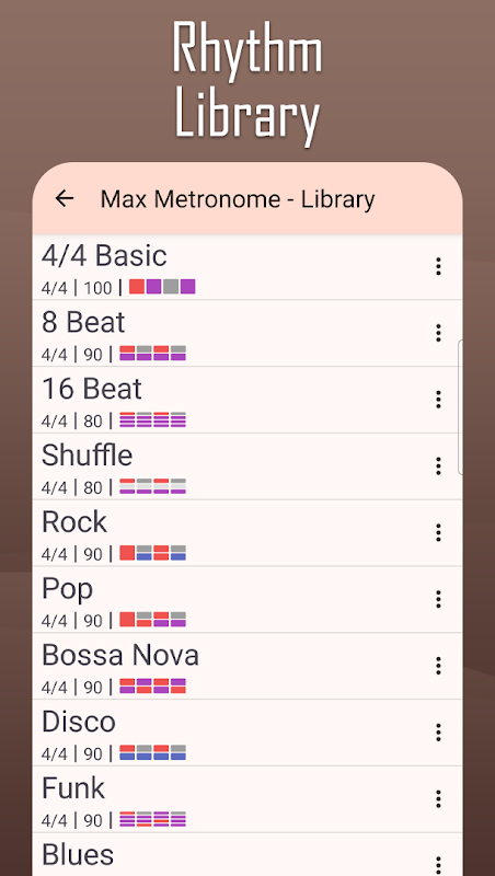 Salva i tuoi ritmi personalizzati nella libreria e inizia a suonare velocemente, sempre e ovunque.