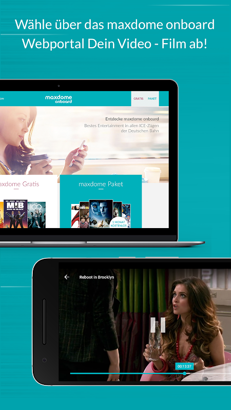 Genieße tausende, viele kostenlose und regelmäßig wechselnde Filme und Serien in allen ICE-Zügen der Deutschen Bahn. Jetzt mit maxdome onboard, dem Entertainment-Service von Deutschlands größter Online-Videothek maxdome. Installiere die komplett kostenlose maxdome onboard Player App – am besten noch vor Deiner nächsten Zugfahrt.