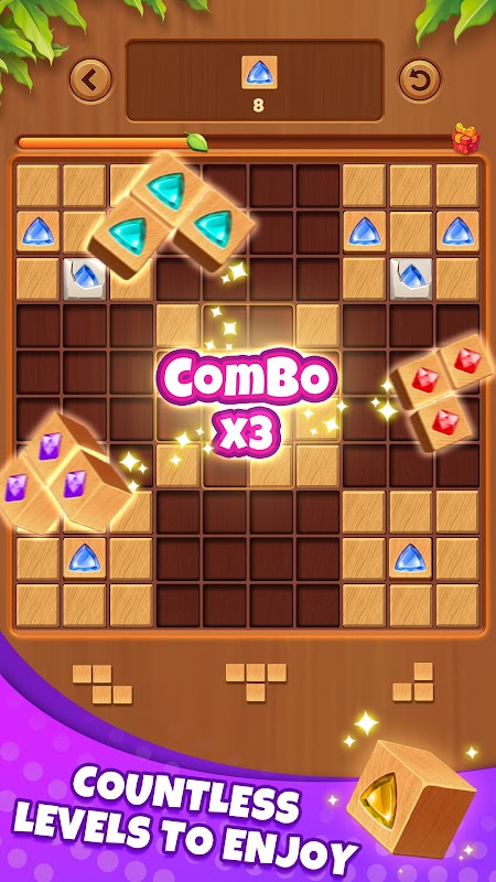 Accostando i blocchi di legno per formare linee e quadrati, questi vengono eliminati. Svuota il tabellone e batti il tuo record di punteggio più alto.
