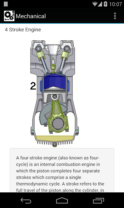 Simple application explaining mechanical animations for the purpose of education and learning.
