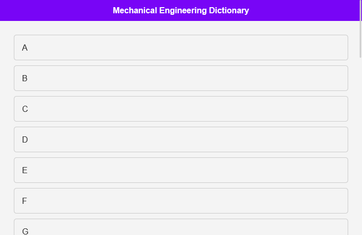 Terminologia estesa: la nostra app include una vasta raccolta di termini di ingegneria meccanica, che coprono tutto, dai concetti di base alla terminologia avanzata. Ogni voce fornisce definizioni per garantire una comprensione approfondita dei principi dell'ingegneria meccanica.