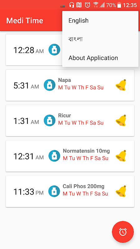 Medi Time è una semplice applicazione di allarme che aiuta il paziente a portare le medicine al momento giusto. è un'applicazione molto facile da usare per fornire informazioni dettagliate su un tipo di farmaco, Programma, Nome, in modo da facilitare la pazienza del paziente circa la sua medicina e la corretta pianificazione. Nella vita frenetica a volte ci dimentichiamo di prendere la nostra medicina importante. quindi senza prendere la medicina adeguata nel tempo giusto causerà un grosso problema alla nostra salute. prendere medicine è un corso regolare per curare le malattie. l'applicazione di tempo medio aiuterà un utente e gli ricorderà di prendere la loro medicina in tempo utile dando allarme e informazioni complete di una medicina.