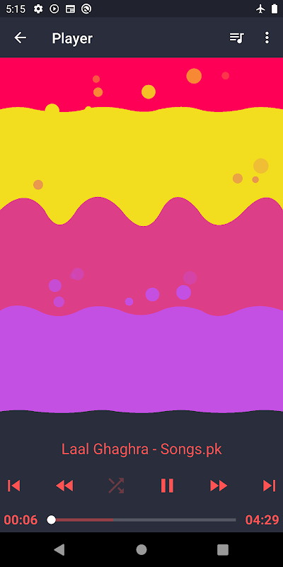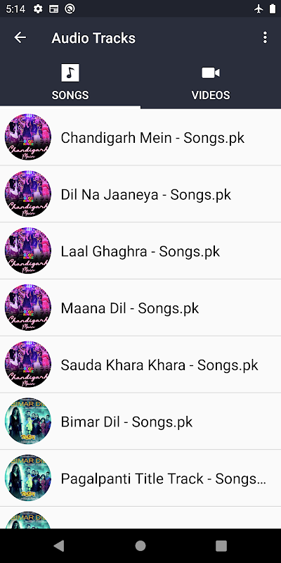 Player mostra la lista di tutti i file multimediali i.e file audio e video in app. L'utente può selezionare e riprodurre questi file.