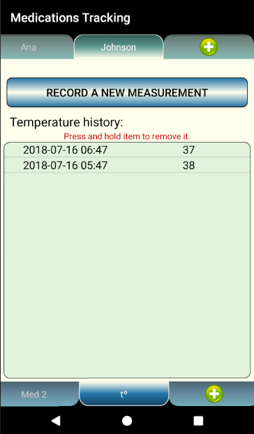 With Medications Tracking you can track what you took and when. You can set an alarm so you do not miss taking the medicine. And you can do that for more then one person. You can add as many people as you want and keep track of their medications.