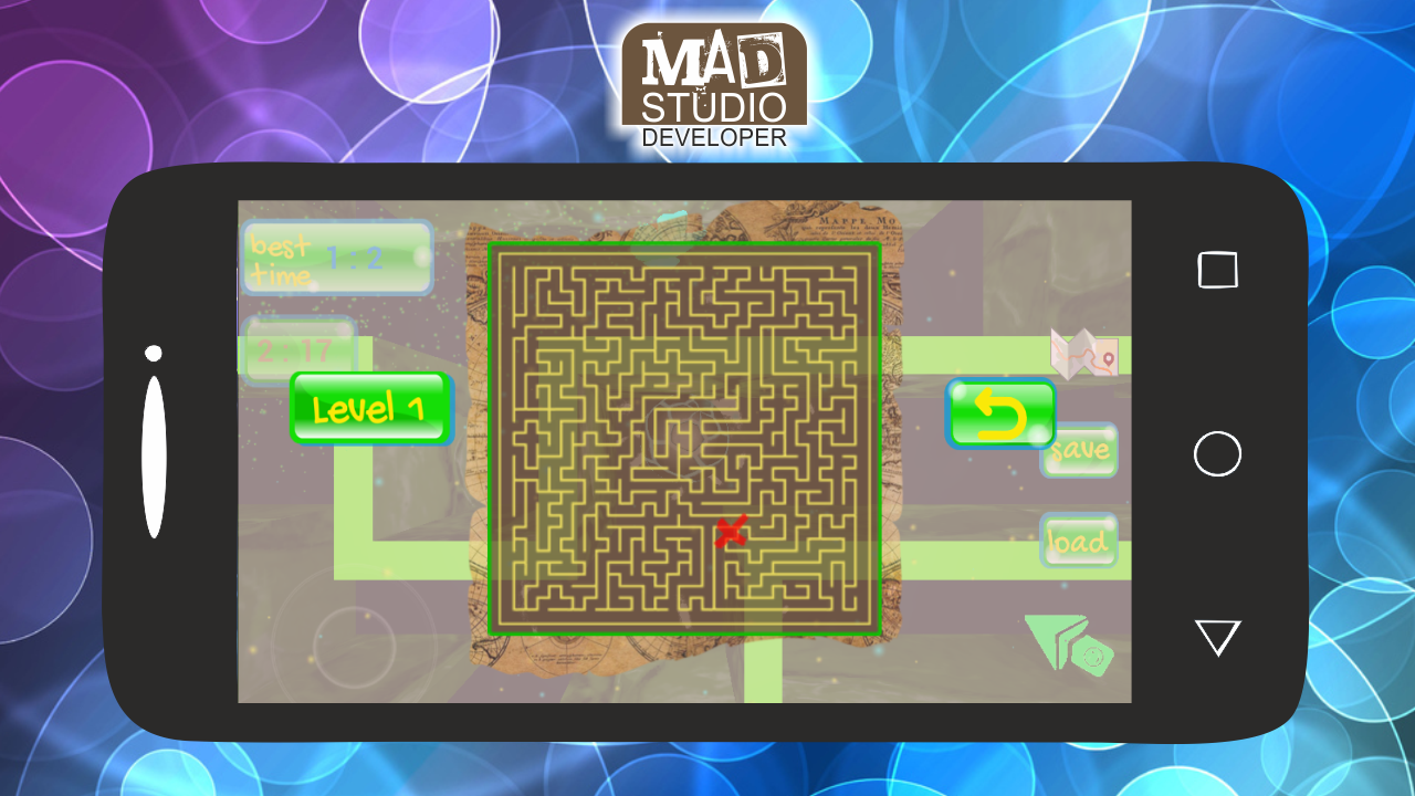 Mega Mad Maze is a fascinating "Labyrinth" puzzle game for your smartphone or tablet, made in the colorful style of a royal candy and confused as the Amazon River.