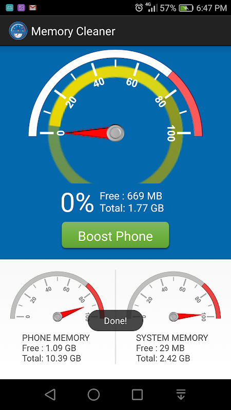 Memory Cleaner is phone booster provides with ease and simplicity a proper tool to clean and optimize the device RAM.