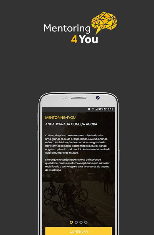 O Mentoring4you é um aplicativo que tem o propósito de ampliar escala de atendimento e contribuição para profissionais liberais da área de desenvolvimento de capital humano, promovendo a construção de uma grande rede de prosperidade.
