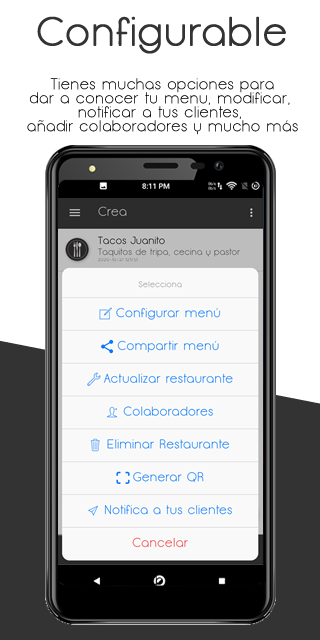 - Generar tu código QR para que tu menú sea escaneado