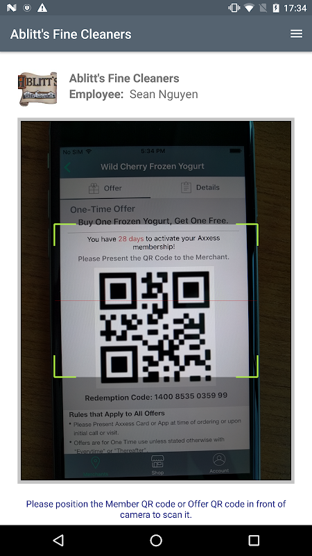 Scan the Axxess Member App or Card using this App.Track the redemptions, sales & customers Axxess brings in!