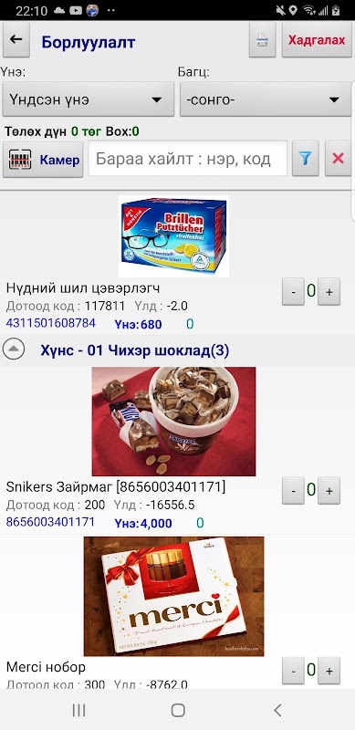 * Барааны кодыг камераар уншуулан бүртгэл хийх.