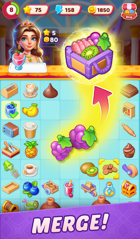 In questa accattivante avventura puzzle di unione, abbina e unisci due oggetti identici per sbloccare potenti potenziamenti. Prepara deliziosi banchetti, completa missioni emozionanti e progetta e rinnova varie aree del regno.