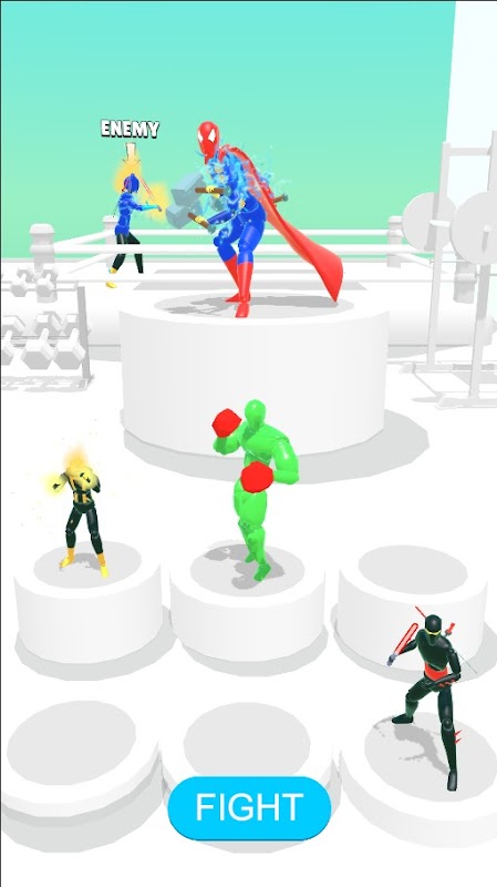 Merge multiple heroes to get one strong superhero and fight your enemies