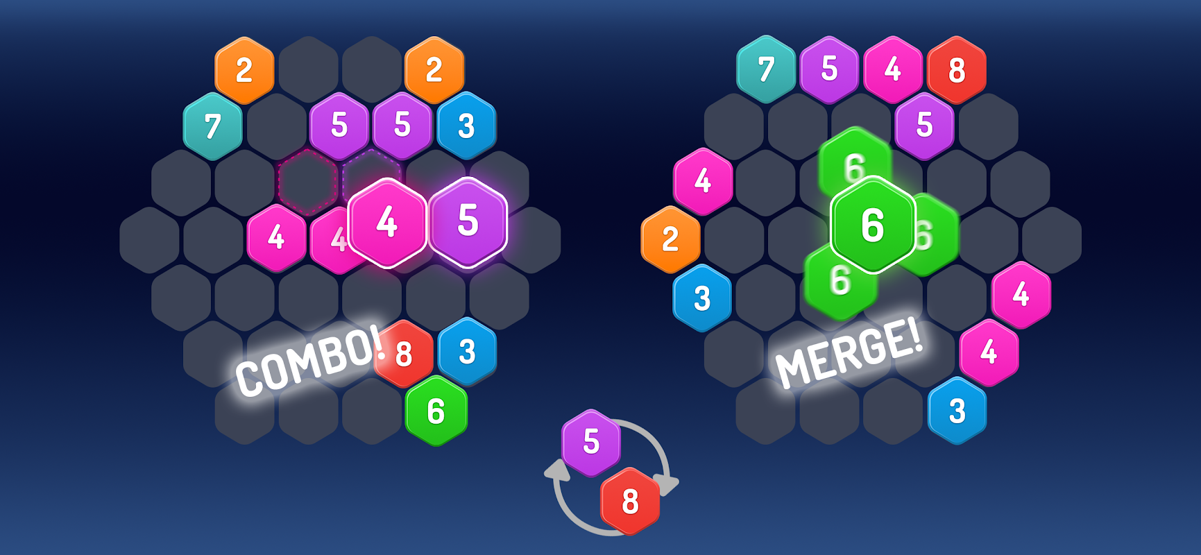 ⬢ Crea e rilascia blocchi numerici e goditi il miglior gameplay di merge hexa.