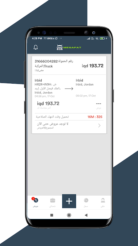 Prenota un carico sull'app Mesafat e trova un vettore adatto, sicuro e affidabile per il tuo carico. L'app mesafat ha presentato che supporta diversi tipi di veicoli, dai rimorchi ai camioncini in Iraq