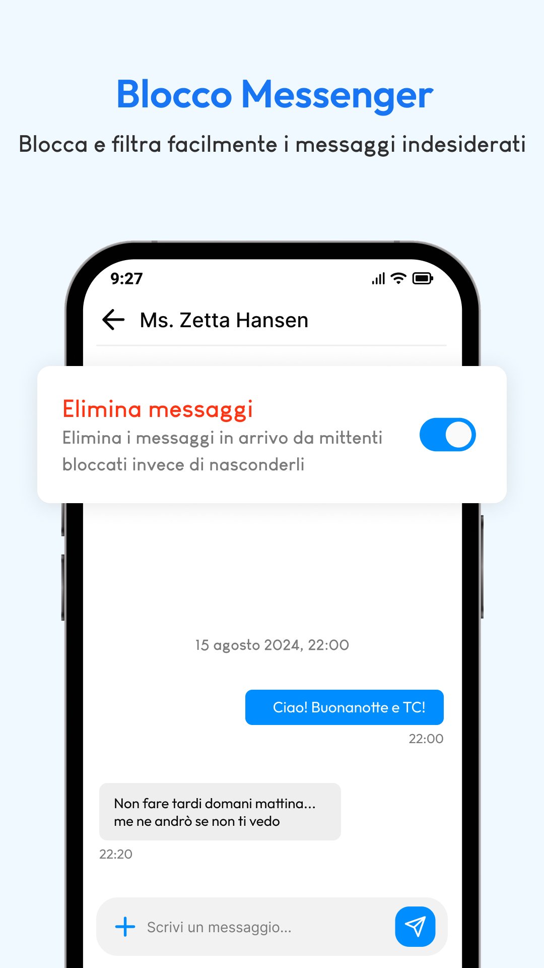 ✔ Blocca lo spam per tenere lontane le chat indesiderate.
