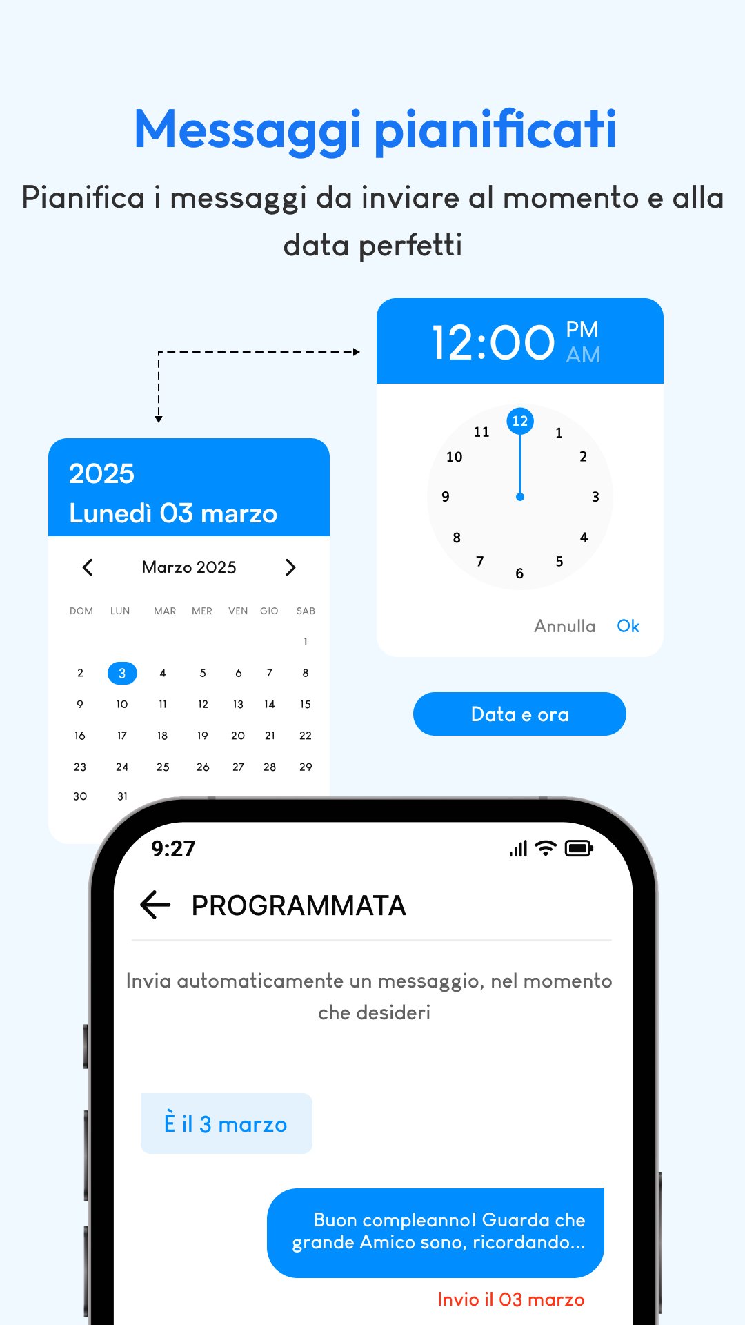 ✔ Pianifica l'invio dei messaggi in un secondo momento.
