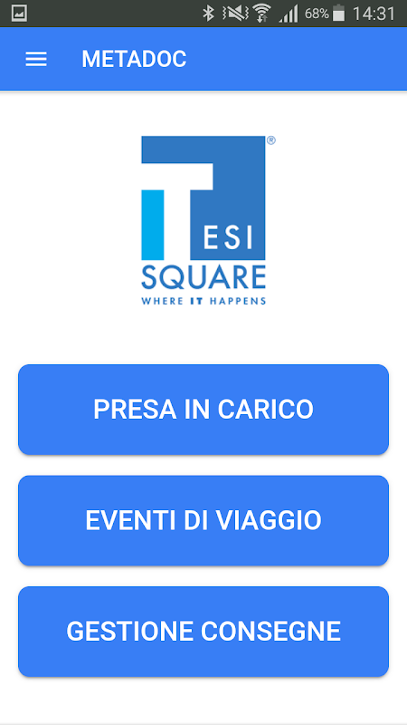 L’APP MetaDoc è collegata a TESISQUARE PLATFORM TMS e consente, per i trasporti di materie prime: la presa in carico, la gestione degli eventi di viaggio e la gestione della consegna avvenuta (POD). Il primo step avverrà tramite la presa in carico dall’autista del borderò, che potrà eseguire tramite digitazione del numero di borderò o tramite la lettura automatica del barcode. Successivamente apporrà la firma di presa in carico e verrà generata la stampa della PIC ed inviata al TMS. Vengono inviate contestualmente le mail al trasportatore ed al destinatario, che contengono in allegato i pdf di borderò (pdf unico con DDT), packing list e PIC. Durante il viaggio tramite la funzione EVENTI DI VIAGGIO, l’autista avrà la possibilità di inserire degli eventi specifici legati al singolo borderò (es. traffico, problemi al mezzo, ecc..) ed allegare note e foto. L’evento verrà inviato al TMS al momento dell’inserimento sull’APP. Infine tramite la GESTIONE CONSEGNE permetterà inserire un esito di consegna al momento dell’avvenuto trasporto. Selezionando il singolo borderò l’autista valorizzerà la consegna (OK, KO o Consegnato con riserva) e verranno apposte le firme del trasportatore e del destinatario. Al salvataggio, la POD verrà inviata al TMS e vengono inviate le mail al trasportatore ed al destinatario, che contengono in allegato i pdf di borderò (pdf unico con DDT), PIC e POD.